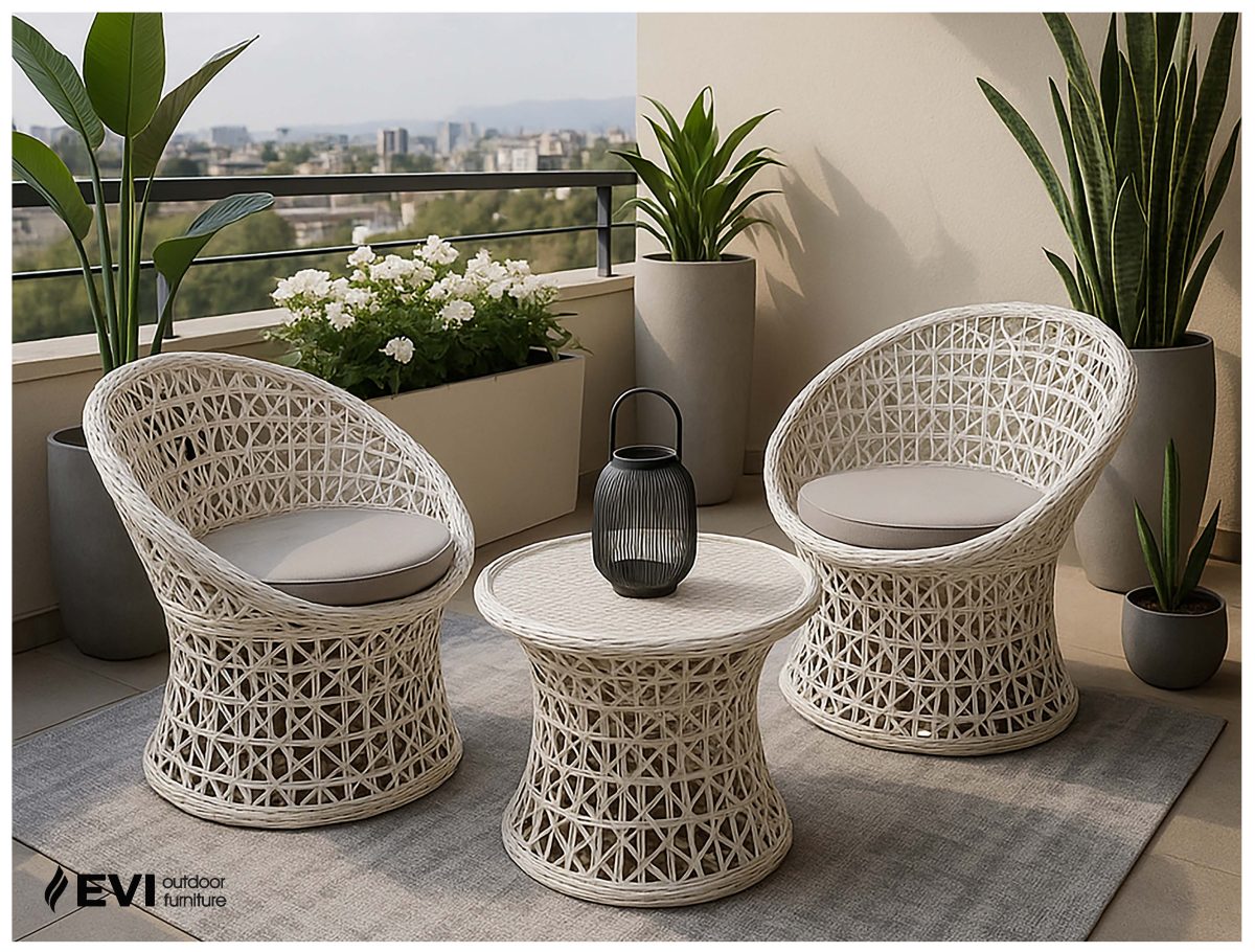 تمامی محصولات دارای فریم آلومینیومی عملیات حرارتی شده با پوشش رنگ الکترواستاتیک هستند که توسط حصیر پلیمری (pe rattan) بسیار مقاوم، به دست هنرمندان بومی بافته شده اند.