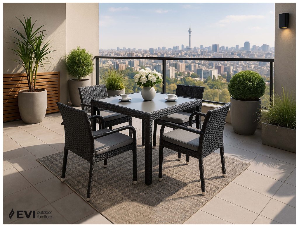 طراحی این ست به گونهای است که راحتی و آسایش را برای کاربران فراهم میکند، مناسب برای استفاده در تراس، حیاط، باغ و ویلا.